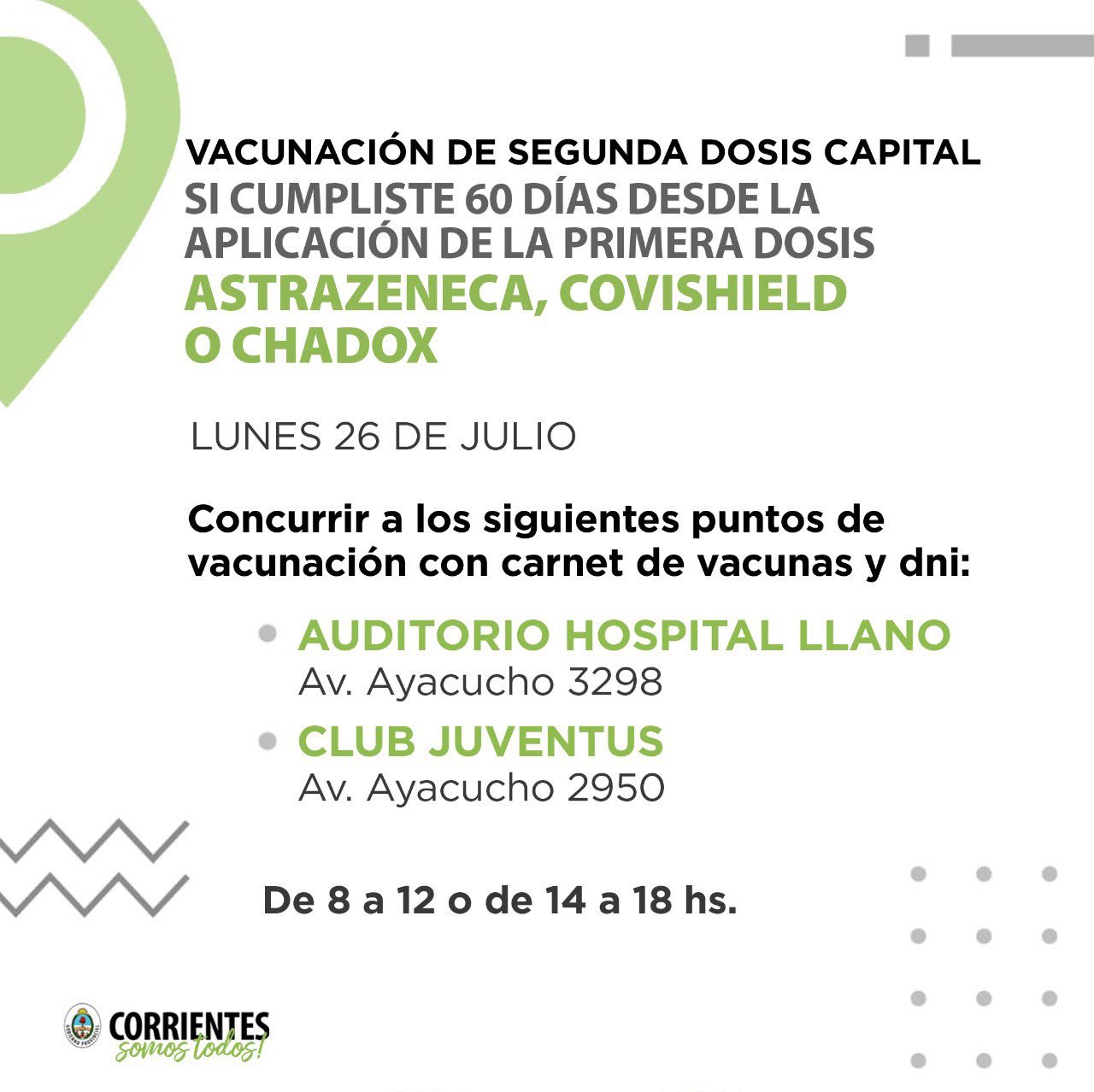 gobierno de corrientes on twitter informacion importante para la vacunacion contra el covid 19 de la segunda dosis de la astrazeneca covishield chadox y sinopharm en capital https t co viyoikhplh