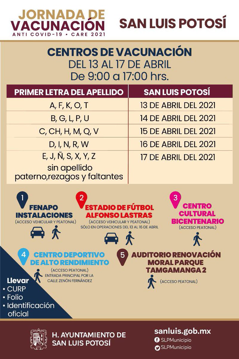 h ayuntamiento de san luis potosi on twitter jornada de vacunacion anti covid19 2021 del 13 al 17 de abril de 9 a 17hrs sanluispotosi slp