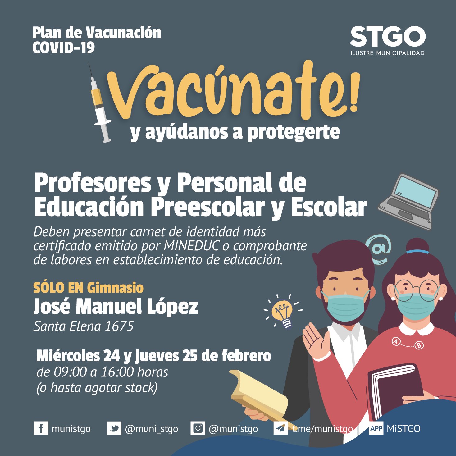 santiago sur twitter santiago atencion a la vacunacion para trabajadores de la educacion con punto exclusivo en el gimnasio jose manuel lopez santa elena 1675 recordamos respetar el calendario establecido por