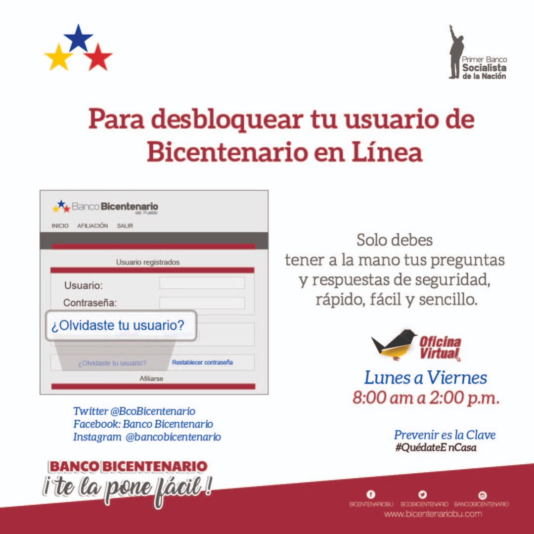 banco bicentenario auf twitter desbloquear tu usuario en bicentenarioenlinea es muy facil si necesitas orientacion para la autogestion de tu requerimiento tienes a disposicion la oficinavirtual en twitter facebook e instagram https t co