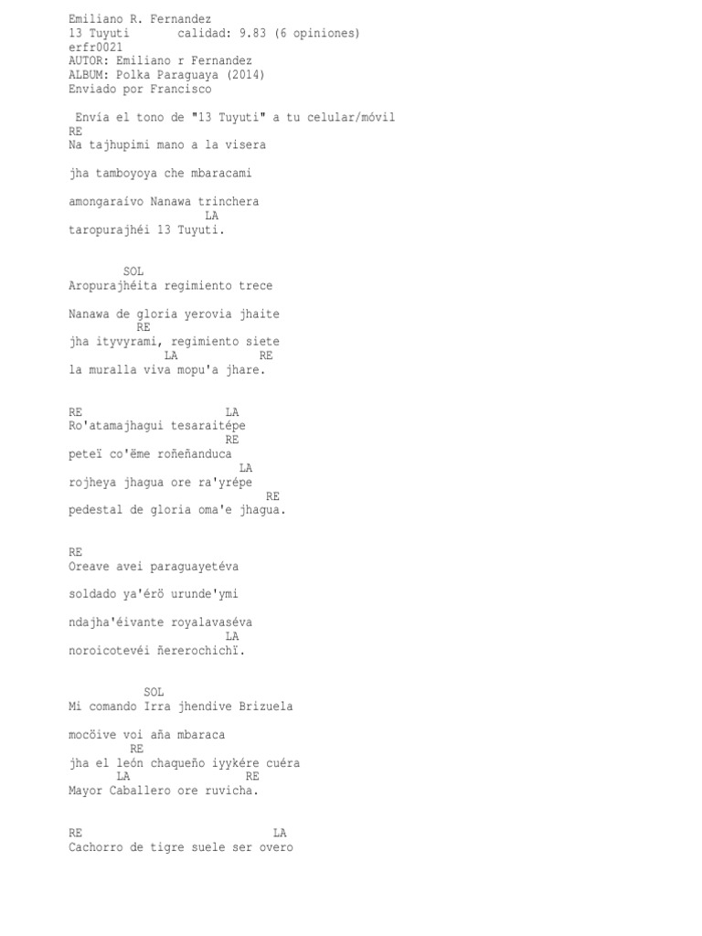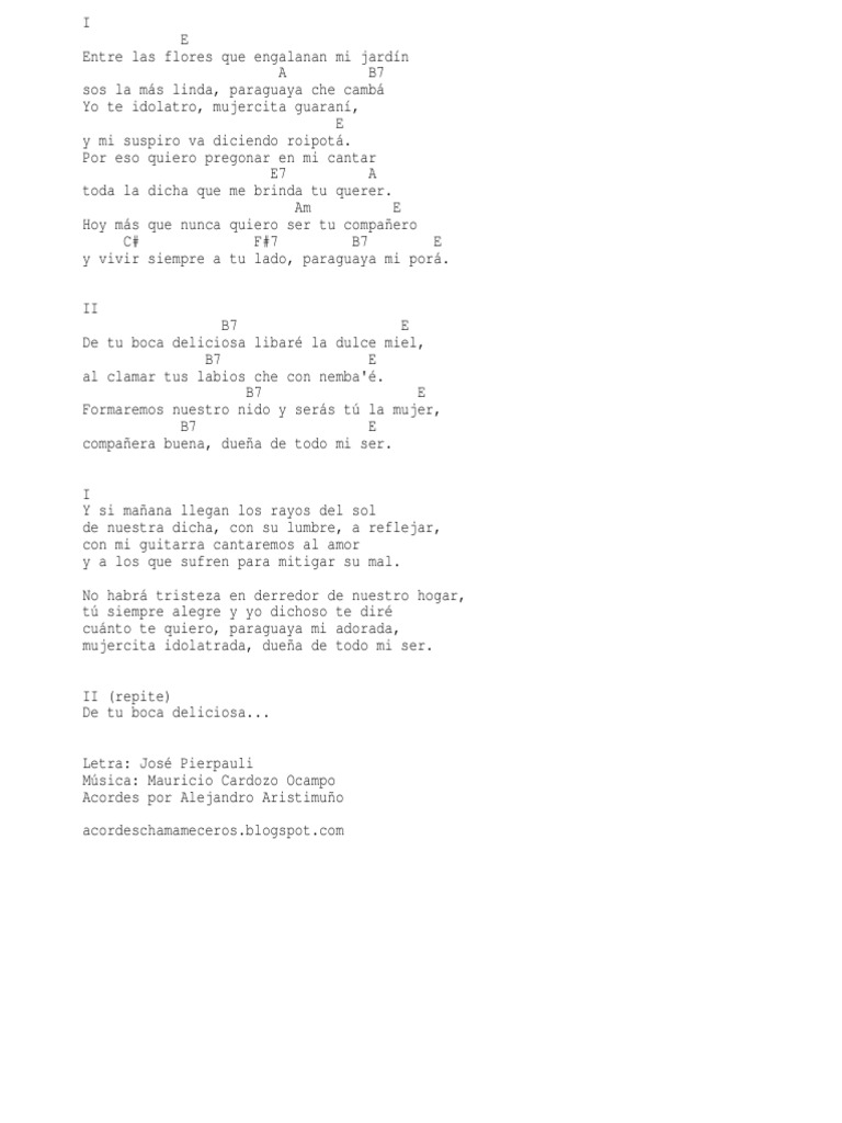 chords for nane mitaro guare letra en guarani y en castellano