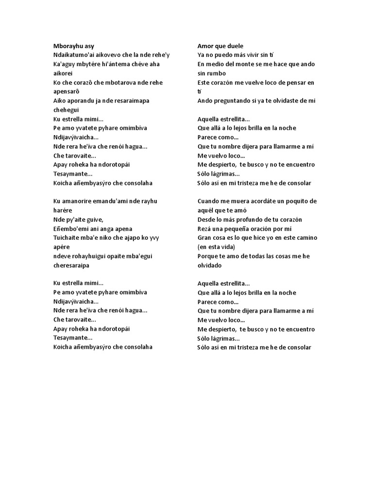letra de mborayhu asy guarania de vicky diaz musixmatch