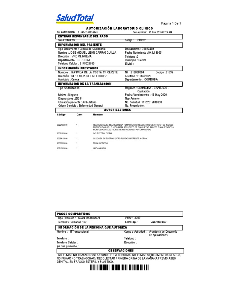 autorizacion laboratorio clinico documento 78023469 medicina especialidades medicas