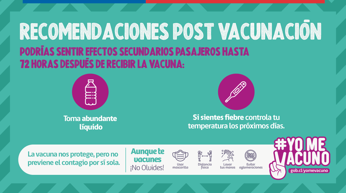ministerio de salud on twitter los pacientes que reciben la vacuna contra el covid 19 podrian experimentar algunos sintomas leves hasta 72 horas despues de la inyeccion sigue estas recomendaciones y no olvides seguir protegiendote