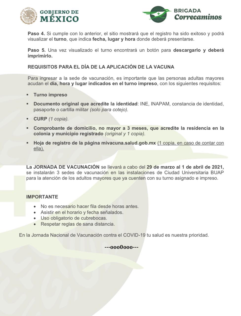 secretaria de salud on twitter como integrantes del operativo correcaminos para coadyuvar con la estrategia nacional de vacunacion contra la covid19 en puebla capital compartimos la siguiente informacion para las poblanas y