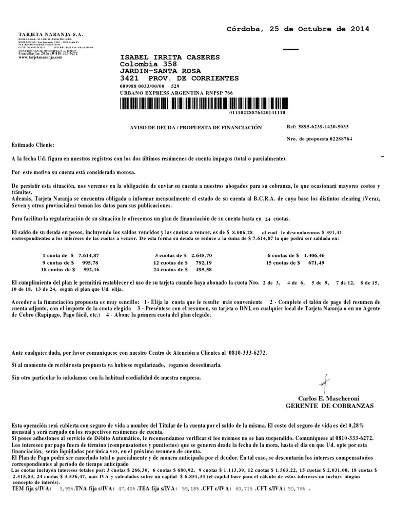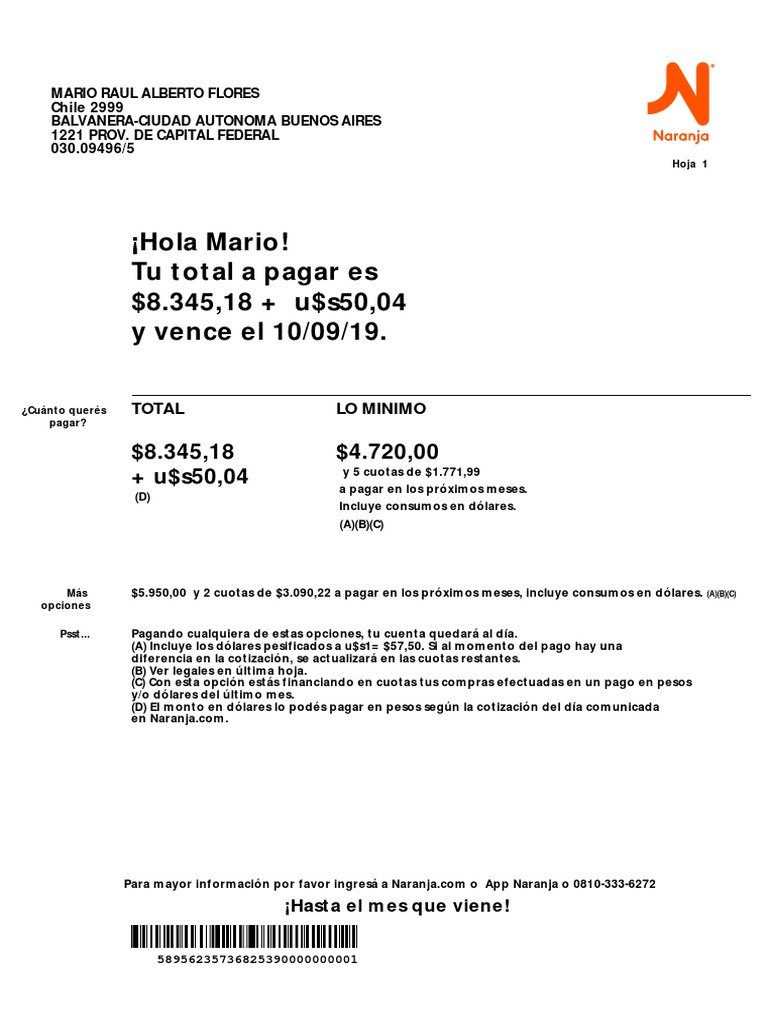 tarjeta naranja como saco el resumen de mi cuenta para pagar informacion actual para los argentinos