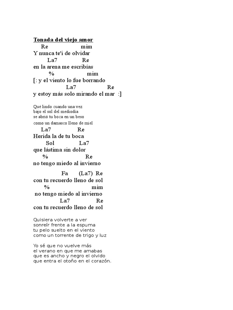 tonada del viejo amor partitura y letra