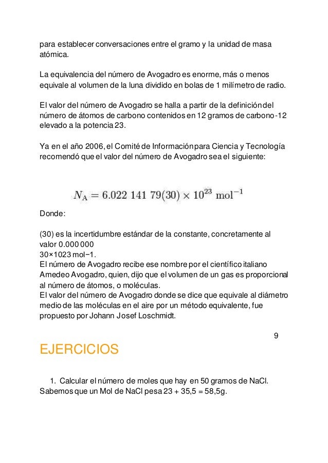 numero de avogadro pdf mole unidad atomos